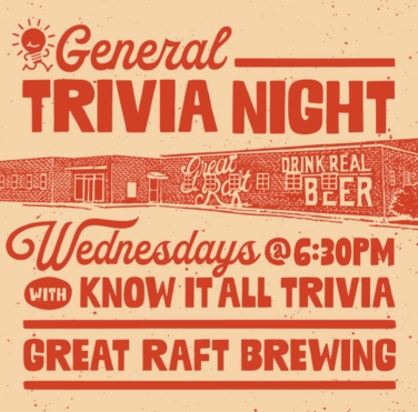 Show off your knowledge at Know-It-All Trivia Wednesdays at Great Raft Brewing.