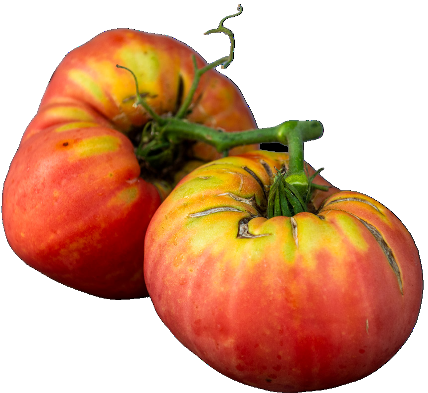 If you’re looking for the Hauser Farm, stop at the first house in Highland, with almost a hundred tomato plants struggling under the weight of some hefty Solanum Lycopersicon specimens just looking for a burger to garnish.