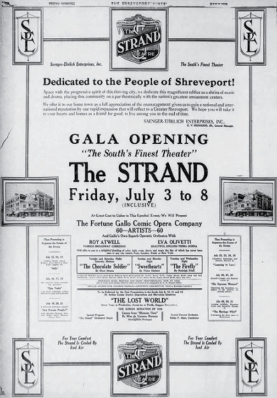 “At the time the Strand was built, downtown was huge. It was the thing. It was a city, and there were many theaters. The 1920s were a boom period for Shreveport.