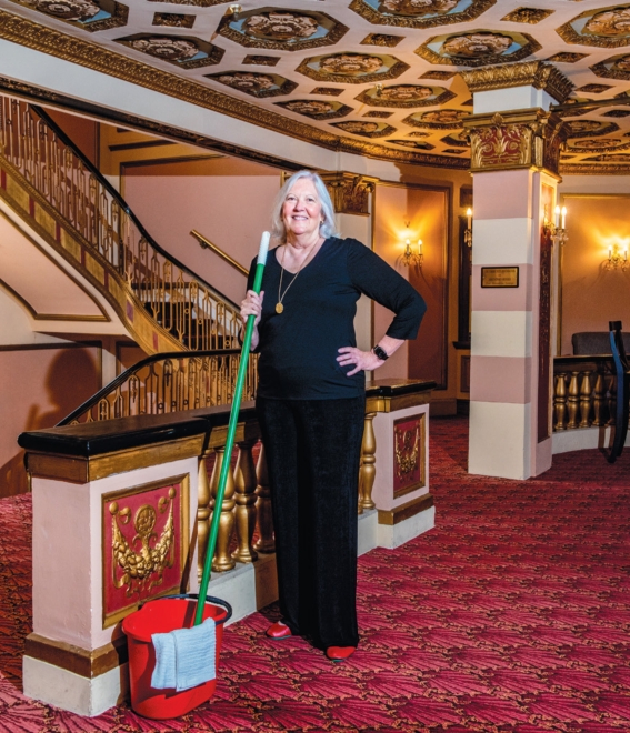 Executive Director Jenifer Hill is not above doing her own cleaning to keep the Strand looking grand during the Covid shutdown.