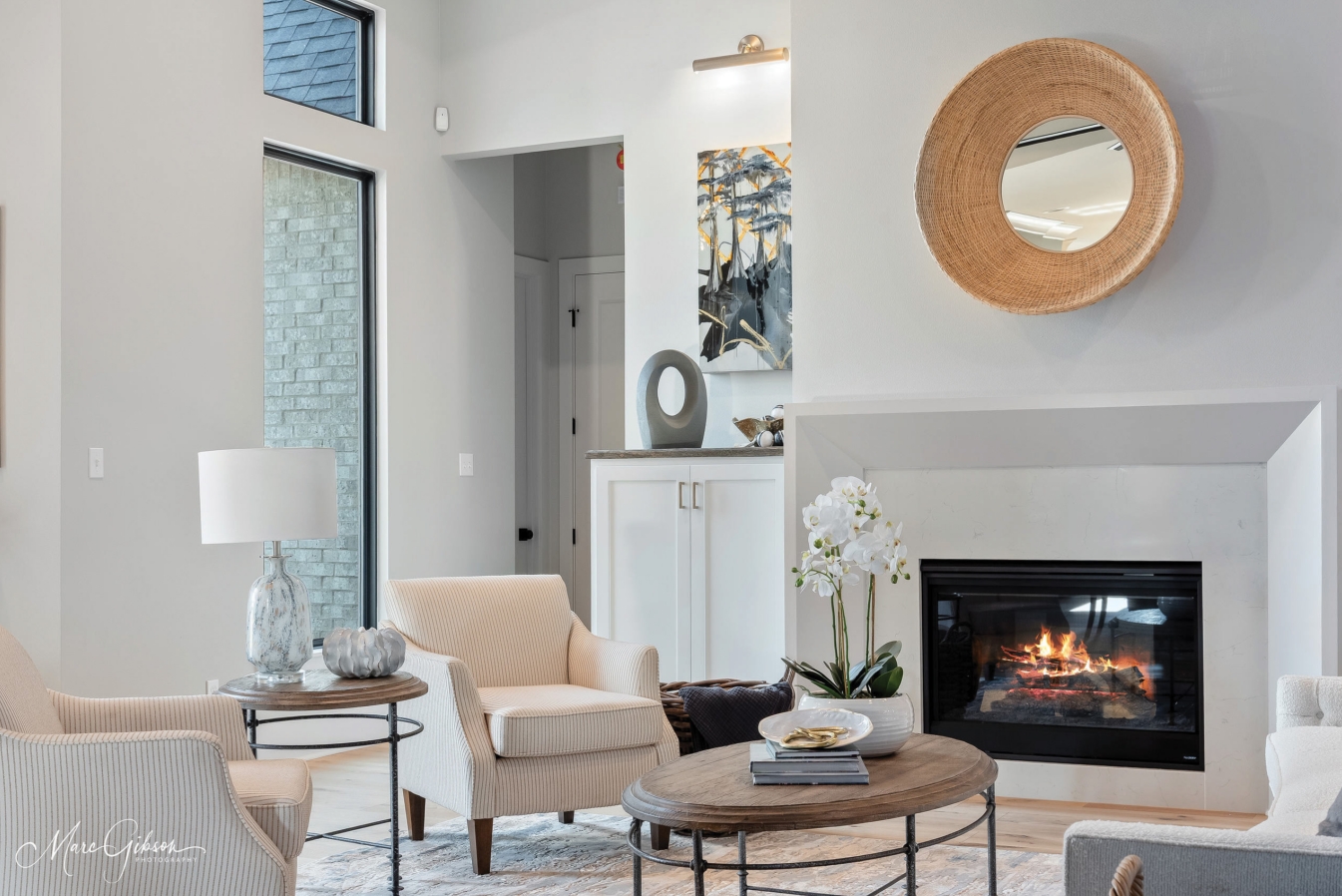 Clean lines along with shape, texture and tone bring light to the living room.