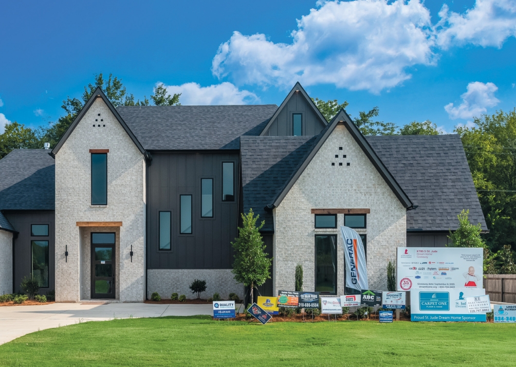 The home features a steeply pitched roof and vertical stair-step windows. On Sept. 8, someone will find themselves the owner of a new, approximately 3,200-square-foot home in Bossier City’s Duckwater Landing subdivision. But the real winner will be current and future patients at St. Jude Children’s Research Hospital in Memphis, Tennessee.