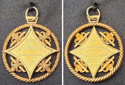 It was engraved on the front: “From the Howards of Shreveport, La.” On the back: “For Christian Kindness Heroic Conduct Epidemic 1873.”