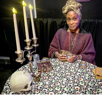 “This year, we’ve got caricature artists, a 360-degree camera, a brave box — you get to stick your hand inside and feel what’s in there. It’s kind of fun and creepy. We’re going to have palm readers, too, fortune tellers. All that’s free; it’s part of the ticket price. It’s $55 per person. It does not include the bar, though.”