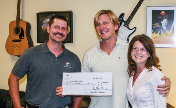 Andy Meadows, the late Lewis Kalmbach (agency founder) and Cindy Smith celebrate the agency’s acquisition by Meadows and Smith in 2002.