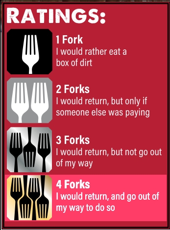 Without hesitation, I give Glow Alchemy Kitchen a rare Four Forks. I still can’t believe we have a place like that, which I had never heard of, much less visited. Not only will I return, I will go out of my way to do so. Glow was that good.