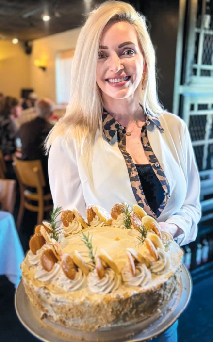 Customer Debbie Younus picks up her Banana Pudding Cake.