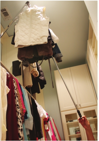 One of the most functional additions to the closet is a “wardrobe lift.” It is a cantilevered hanging rack made so that it may be moved down to be easily reached with the pull of a lever. Although she meets with other professionals in her field yearly to confer about what is new and trendy, she finds her ways are often different. Taking advantage of high spaces is one of Johnson’s trademarks.