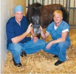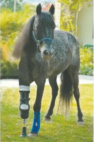 Moore agreed to remove her leg below the knee, and a temporary artificial limb was built. Molly walked out of the clinic and her story really begins there. ‘This was the right horse and the right owner,’Moore insists. Molly happened to be a one-in-a-million patient. She’s tough as nails, but sweet and she was willing to cope with pain. She made it obvious she understood that she was in trouble. The other important factor, according to Moore , is having a truly committed and compliant owner who is dedicated to providing the daily care required over the lifetime of the horse.