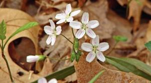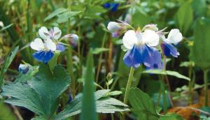 Wildflowers pictured, clockwise from top left: Virginia bluebells (Mertensia virginica) are partial-shade lovers that bloom in April, forming carpetlike masses when in flower. Their nodding, trumpet-shaped flowers start out as pink buds that form light blue flowers. Blue-eyed Mary (Collinsia verna) also known as “Innocence,” favors dappled light. These flowers have a presence in only 16 states and are on the endangered list in New York and Tennessee. Blue violet (Viola pratincola), the Illinois state flower, blooms from March to June on plants with heart-shaped leaves. Spring beauty (Claytonia virginica) typically blossoms from March to May. It has straplike leaves and small white or pink flowers with darker pink veins running through the petals. Dutchman’s breeches (Dicentra cucullaria), found blooming during April, look like trousers hanging on the wash line and have two inflated bloomerlike spurs that form above fernlike leaves.