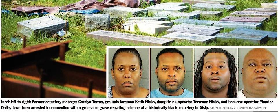 On July 8, Dart arrested Towns and three current employees, charging each with one count of dismembering a human body. This week, sheriff’s spokesman Steve Patterson confirmed that those charges are likely just the beginning. “Just when you think you’ve got your arms around this, the next day you find something new,” he says. Towns is the alleged mastermind of a macabre scheme that dates back four years: At her direction, a grounds foreman and a backhoe operator would smash concrete grave liners, coffins and their contents, load it onto a truck and haul it to the cemetery’s back lot. In this way, they made room for fresh plots, which Towns sold to unsuspecting customers.