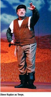 For almost four decades, only two men (Jack Duffy and Barry Weiss) have played the lead role of Tevye at The Muni. This time, the part went to veteran local actor Steve Kaplan. Kaplan, who is on stage for almost each of the show’s 160 minutes, must set the tone and drive the production — and he does both jobs nicely.
