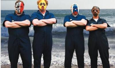 Go! Tsunami player-participants, “Riptide,” “Stingray Jr.,” “Stan Overboard” and “The Fury” (not their real names) wear personally altered hockey masks and standard issue coveralls, while playing with nothing less than loud and wild abandon in a cacophony of rhythm-driven, minor-key songs intended to “conjure images of hot rods, horror movies, long boards, Tiki idols, beach parties, exotic islands, classic cars, pin-ups, cheap beer and rum,” according to a group summary. The band scored airplay lately on the radio show Surfabilly Freakout from Champaign-Urbana’s WPGU and played several dates in Springfield, Chicago and Champaign over the last year and a half.