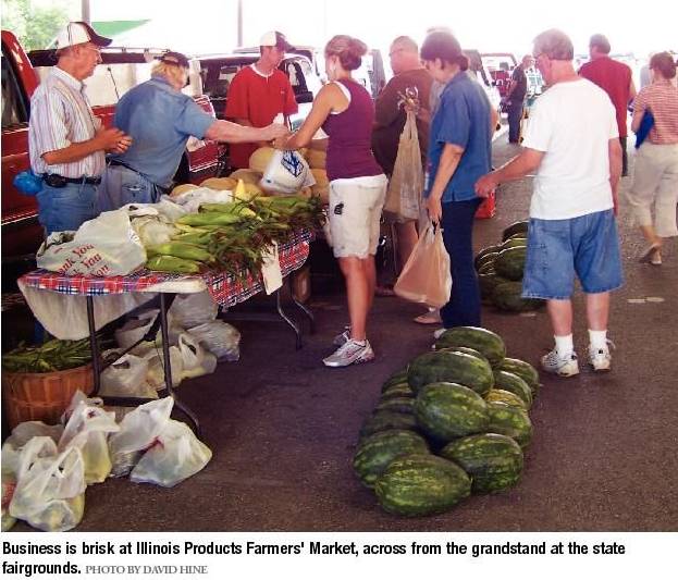 Hopefully, there are more to come. One of the biggest contributors to the Illinois Products market’s ambience is wine. Folks stroll around with (real) wineglasses filled with wines ranging from light whites to earthy reds. The stand is operated by the Illinois Grape Growers and Vintners Association. Last year, says the IGGVA’s Megan Presnell, the stand offered a variety of wines each week from several wineries. This year, wines from a single, different winery are sold each week, giving customers a chance to meet the winemakers and learn firsthand about them and the fruits of their labor. “They’re selling lots of wine,” says market manager Kristi Jones. “Some travel two or three hours for this, and they’re all just so happy to come.” “This market’s really starting to mature,” says Dale Merwyn, who also has stands at the Wednesday and Saturday downtown markets as well as three in the St. Louis area. “Look at this pile of empty boxes!” Having multiple markets to sell his produce clearly makes him happy — and weary. The Illinois Products Farmers’ Market takes place on Thursdays from 4-7 p.m. until Oct. 22, excepting Aug. 13 and 20. Parking is plentiful and most stands are set up under a pavilion. Contact Julianne Glatz at [email protected]. See also