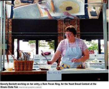 Tough job, but somebody has to do it The fairgrounds are bustling in the days before the Illinois State Fair opens, and no location is busier than the culinary division in the Hobby, Arts, and Crafts Building. On Friday is cleaning and set up. On Sunday and Monday, contestants’ entries are checked in. Tuesday and Wednesday the items are judged, then put on display for opening day. If that doesn’t seem like much, consider this: There are seven adult divisions for which the entries must be submitted and judged prior to fair opening; except for canned goods, the junior competition has parallel divisions. Largest is Division One, baked products, with nine sub-categories; only two sub-categories have a single contest.