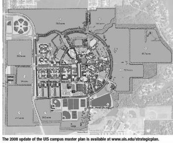 The UIS master camus plan Last fall, the University of Illinois trustees approved the most recent UIS campus development master plan. The document maps the preferred locations of hoped-for new student housing and office and classroom buildings.