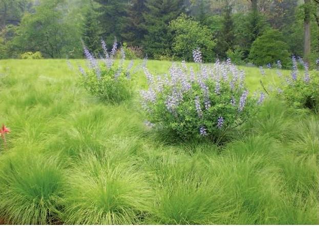 Early Native Americans ground the seeds to make flour. In late summer, open-airy flower heads appear on thin stems which rise above the clump of foliage. Prairie dropseed is a seethrough plant, as you can see between the flower stems. Single flowers are borne in sparse clumps at the end of the stem. Blooms are pink and brown-tinted. Full height of the plant in flower is two to three feet. The plant spread is two to three feet across.