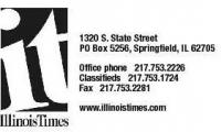 Illinois Times, P.O. Box 5256, Springfield, IL 62705. SUBSCRIPTIONS: Send