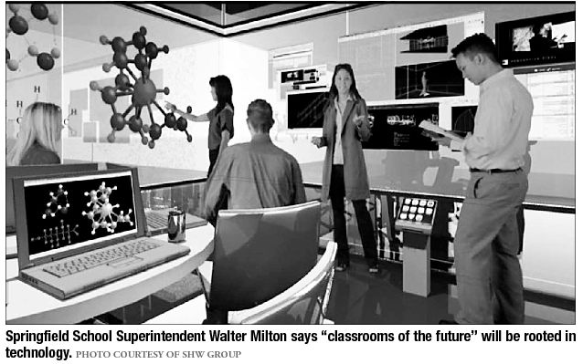 In its recent presentation, the Springfield School District affirmed that its goal is “to create 21st century high schools to prepare our students to compete on a global stage.” Milton says developing these “classrooms of the future” will go hand-in-hand with developing small learning communities.