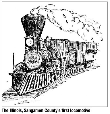 On February 15, 1842, the locomotive “Illinois” steamed into town. “Hundreds of people from the surrounding country gathered along the tracks to see this marvel…, this huge piece of machinery which some said was to replace oxen and horses — they really could hardly believe that,” wrote Helen Van Cleave Blankmeyer in The Sangamon Country (Sangamon County Historical Society, 1965).