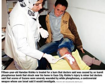 Sources: “White Phosphorus Use Evidence of War Crimes Report. Rain of Fire: Israel’s Unlawful Use of White Phosphorus in Gaza,” Fred Abrahams, Human Rights Watch, March 25, 2009; “Suspend Military Aid to Israel, Amnesty Urges Obama after Detailing U.S. Weapons Used in Gaza,” Rory McCarthy, Guardian/U.K., Feb. 23, 2009; “U.S. Weaponry Facilitates Killings in Gaza,” Thalif Deen, Inter Press Service, Jan. 8, 2009; ”U.S. military resupplying Israel with ammunition,” Saed Bannoura, International Middle East Media Center News, Jan. 8, 2009.