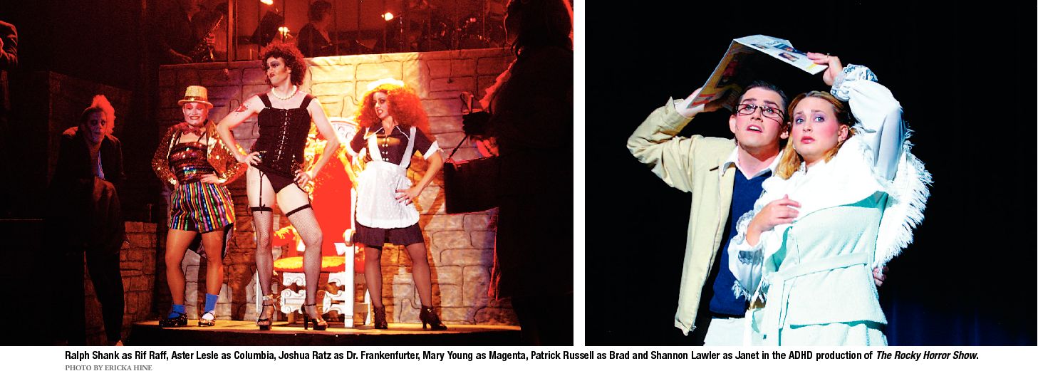 Richard O’Brien wrote The Rocky Horror Show, which launched in London 36 years ago and has since achieved cult status in part because most versions encourage and provoke audience participation. The Springfield production is no exception, and although many came dressed in character, Hoogland audience members must purchase approved prop bags from the theater instead of smuggling in their own newspapers, party poppers, rubber gloves and other traditional items.