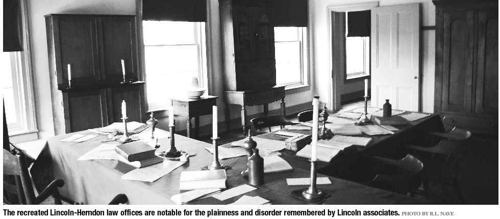 The three-story Tinsley had been built in 1840 or so by merchant Seth Tinsley, who housed his dry-goods store in it and let rooms in the parts he didn’t need for offices. Among his tenants were Mr. Lincoln, who first moved in in 1843 as the junior partner of Stephen T. Logan and stayed a further nine years as the head of the firm of Lincoln and Herndon.