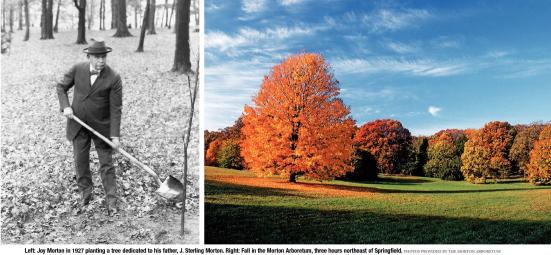 By 1920 Joy Morton had become an important Chicago civic leader, involved with its famous city plan and a proud promoter of its growth. He asked the manager of his St. Louis branch to visit Henry Shaw’s famed botanical garden there with a view to establishing one like it in the Chicago area. Morton also toured European gardens as well as International Harvester Chairman Charles Deering’s 435-acre Florida botanical garden. On land near Lisle, he began work on the Morton Arboretum with an initial planting of some 23,750 pine trees. It was “something to develop during the balance of my life…and hope the work may prolong my life.” He engaged leading landscape architect Ossian Cole Simonds (designer of Springfield’s Washington Park) to survey and lay out the 400 acres.
