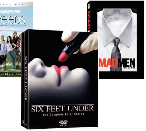 1- Six Feet Under: The Complete First Season (HBO) $39.98 Emmy Nods: Outstanding Actor (2), Outstanding Actress (2), Outstanding Guest Actress (2), Outstanding Series, Outstanding Supporting Actor, Outstanding Supporting Actress