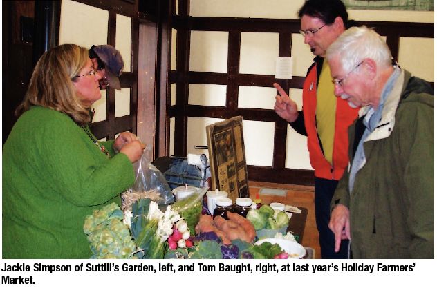 Festive as the regular farmers’ markets are, Holiday Markets are even more so, and this year is no exception. There’ll be music, kids’ activities, cooking demonstrations, and many farmers and vendors will offer samples. For lunch there’ll be soups and sandwiches made with local ingredients. There’ll be fresh and dried holiday wreaths and arrangements. There’ll be handmade soaps and lotions (my daughter swears by Afterthought Farms’s goat milk lotions), herbs and herbal products. There’ll be pies, cakes and cookies, breads and rolls, tortillas and pizza dough – even homemade dog treats! There’ll be turkeys, beef, chicken, pork and eggs. There’ll be cheeses and wines. There’ll be a wealth of produce: lettuces and greens, squashes and pumpkins, apples and pears, and much, much more.