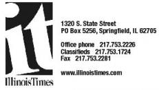Illinois Times, P.O. Box 5256, Springfield, IL 62705. SUBSCRIPTIONS: Send