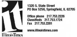 Illinois Times, P.O. Box 5256, Springfield, IL 62705. SUBSCRIPTIONS: Send