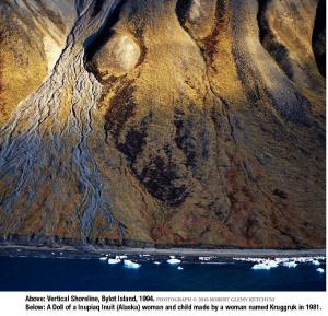 Also included are miniature carvings of a seal and polar bear made from a mammal’s tooth, finely woven and decorated Inuit and Aleut baskets, and a beautifully crafted midnineteenth century Tlingit adze.
