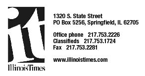 Illinois Times, P.O. Box 5256, Springfield, IL 62705. SUBSCRIPTIONS: Send