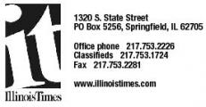 Illinois Times, P.O. Box 5256, Springfield, IL 62705. SUBSCRIPTIONS: Send