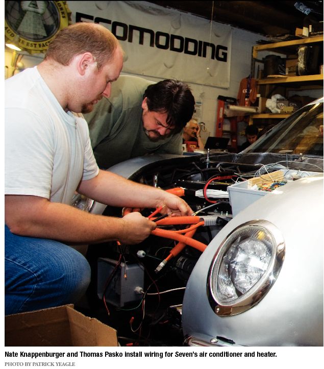 Jen Danzinger, Smith’s wife and the team’s graphic artist, says the car’s theoretical top speed is 220 miles per hour – though they’ve only taken it up to 70 mph – and it can accelerate from zero to 60 mph in about 10 seconds. Unlike internal combustion engines, electric motors put out the same power at all rotation speeds, meaning Seven can generate a whopping 398 foot-pounds of torque from the instant the “gas” pedal is pressed.
