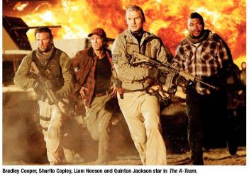 While I am the first to decry how vacuous summer movies are, I have to admit that I had a blast at Joe Carnahan’s big screen adaptation of the ’80s TV hit “The A- Team.” While it has little in the way of socially redeeming values, it does accomplish its mission, which is to entertain and to take no prisoners while doing so. Logic is the film’s first casualty in the opening sequence, as we see how Hannibal (Liam Neeson), Face (Bradley Cooper), B.A. (Quinton “Rampage” Jackson) and Murdock (Sharlto Copely) came to meet, bond and blow things up real good. Though it relies on coincidence and happenstance far too much to be credible, Carnahan creates and maintains a tone of high adventure where handcuffing two dogs to each other may not be probable but sure is fun to watch. After running covert operations as an alpha unit for the United States for eight years, the team hits a snag when they find themselves double-crossed and accused of stealing a batch of engraving plates in Iraq. Court-martialed and sent to separate prisons, they break out in order to clear their name but they must contend with Agent Sosa (Jessica Biel) who’s hot on their trail as is Lynch (Patrick Wilson), a CIA agent not to be trusted. While Carnahan and his co-writers put some twists and turns in the plot, they’re not kidding anyone. The film’s purpose is to deliver rousing action set pieces laced with sardonic humor and for the most part they succeed in doing just that. In addition to the opening sequence which features some fun CGI-aided helicopter maneuvers and an urban shootout outside glassed office buildings 20 stories up, the highlight is a scene that finds the team plummeting to the earth in a tank after their flying fortress has been blown to bits. Defying all rules of physics, they manage to “fly” the tank to safety as we smile at how wonderfully ridiculous this moment is. Ensuring the film’s success is Carnahan’s smart casting. Neeson brings credible brains and brawn to Hannibal; Cooper is wonderfully narcissistic as Face; and Jackson doesn’t embarrass himself as B.A., tapping into the character’s fears as well as rage. If anyone steals the film, it’s Copely (“District 9”). As the unhinged Murdock, the actor has great fun going batty and cracking wise behind the stick of a helicopter as the bullets fly and tension rises. There’s a chemistry between these four that not only makes me forgive the film’s lapses in logic but also has me hoping they’ll create more movie mayhem real soon. Contact Chuck Koplinski at [email protected].