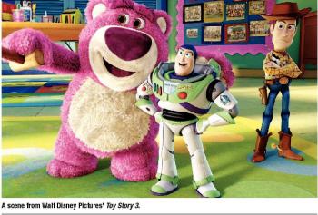 Critics and fans have been falling all over themselves praising Toy Story 3 as if it were the animated Citizen Kane. Don’t get me wrong, I think it’s a fine film and it hits all of the points we expect it to. I simply don’t think it’s as good as the other two entries in the series. There are a great many factors at play as to why it’s getting the reaction it is. It is one of the best summer films by default and there’s a high degree of nostalgia surrounding the film that’s blinding many to its faults. Woody, Buzz, Jessie (voices by Tom Hanks, Tim Allen and Joan Cusack respectively) and the rest of the toy crew are in a tizzy because their owner, Andy, is going to college. Knowing they can’t go with him, they begin to fret about their fate, not knowing that they’re destined for an extended stay in the attic. However, through a series of mistakes, they end up being donated to a daycare center where they’re introduced to Lotso (Ned Beatty), a strawberry-scented bear whose benevolent appearance belies a nasty side. Needless to say, the toys find themselves at the mercy of a bevy of violent children and set out to escape in order to return to Andy’s. This is virtually the same premise as Toy Story 2 only told through a darker lens, while none of the characters develop in a meaningful way. Though there’s something to be said for finding solace in revisiting the familiar, I expect more than a slick retread from Pixar Studios. Keep in mind, I’m not saying this is a bad movie – it’s quite funny at times and so suspenseful it may be the cause of nightmares in young viewers – but there’s a “been-there, done-that feel” to it that makes it like a used toy rather than something shiny and new. See also