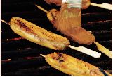 Brush and oil the grill grate. Peel the bananas and skewer them through on end if desired. Grill the bananas until they are lightly browned and partially cooked, 1-2 minutes per side. Dip the bananas in the coconutcaramel sauce (that’s where the skewer comes in handy) or brush the bananas on all sides, using a basting brush, and return them to the grill. Continue grilling the bananas until they are darkly browned and sizzling, 1-3 minutes longer per side. Use a bamboo skewer to test for doneness; it should easily pierce the banana. Transfer to plates or bowls. Spoon the remaining sauce on top and serve immediately. Serves 4