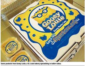 Last November, gooey butter cake hit the big time in the Big Apple when New York Times food writer Melissa Clark wrote about negotiating for the last piece at the Made By Molly stand at the Park Slope Farmers Market in Brooklyn. A friend had told her about it, saying “It’s yeasty on the bottom, like a babka, and sweet and gooey on top, like cheesecake but stickier,” she said. “It melts in your mouth.” The guy in line ahead of Clark had bought the last piece; she traded a brownie and two coconut bars for it. Readers who made the gooey butter cake recipe included in the article swooned with delight in online posts; a couple months later it appeared on The Hungry Mouse, a website recommended by Saveur magazine, and received equally rave reviews.