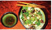 Place the garnishes in separate bowls or arrange them – except for the peanuts and Siracha, which should be kept separate – on a large platter. Diners can add the type and amount of garnishes and mix in as much dipping sauce/dressing as they’d like.