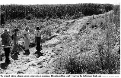 The problem with the system is the damage that longwall mining inflicts on the surface of the land. Removing the slabs can lead to sinking on the surface, with some land sinking down 15 feet, causing damage to roads and formations of creeks in what was once profitable farmland.
