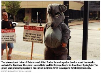 Union protests non-union hotel work crew For about two weeks last month, a group of painters protested outside the President Abraham Lincoln Hotel and Conference Center in downtown Springfield as a small crew worked to update the look of 316 guest rooms.