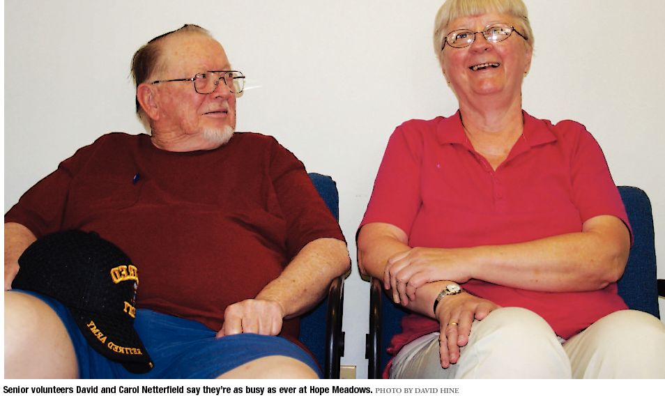 Senior volunteer Carol Veit first heard about Hope Meadows during the mid ’90s in a Southwest Airlines magazine. A mother of two and a former physical therapist from El Paso, Texas, Veit says she knew long before she retired that she wanted to volunteer at Hope. Though she has only lived there for about two months, Veit says she is already finding her place in the community, volunteering to work with children at the neighborhood activity center and acting as an “unofficial taxi service,” driving children to places outside the threestreet area making up Hope Meadows.