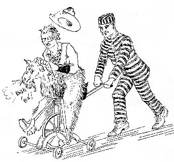 Visitors to the DeMoulin Museum in downtown Greenville can enjoy the “corral” (above) which contains lodge initiation devices manufactured by DeMoulin Bros. in its early years. The Low Down Buck (inset) as depicted in the 1930 DeMoulin Bros. catalog. PHOTO COURTESY OF DEMOULIN MUSEUM