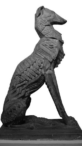 The Richard W. Bock Sculpture Museum and Almira College House featue many sculptures, including “Geometric Dog” (above).