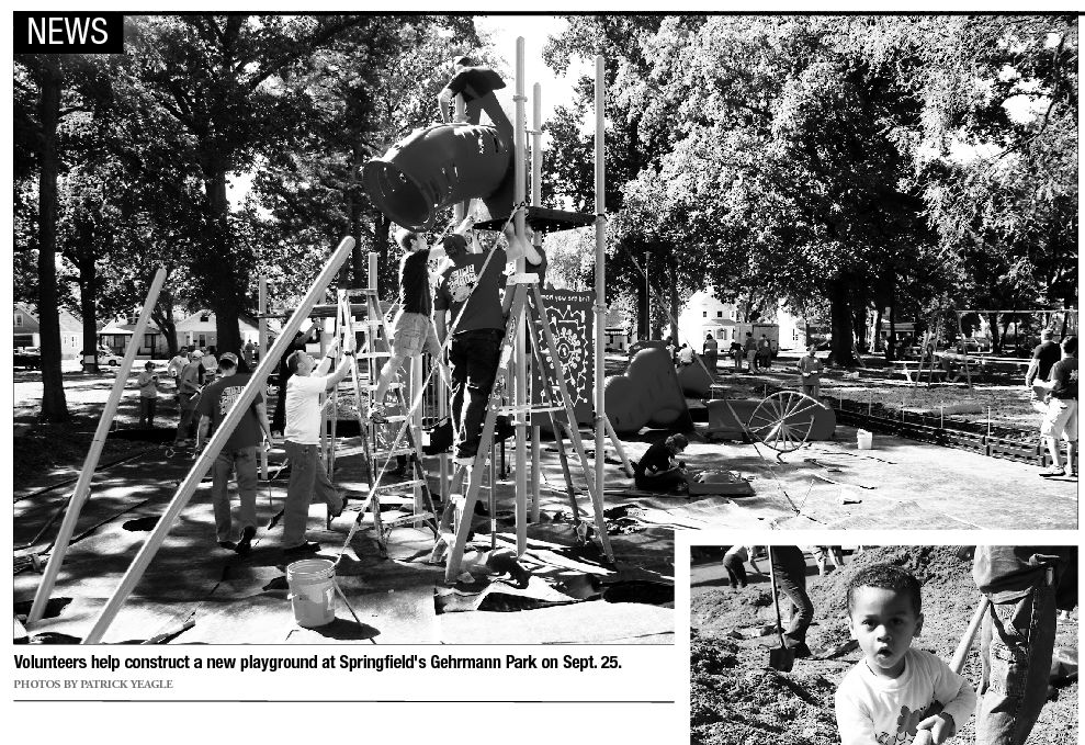 On Sept. 25, about 200 volunteers converged on Gehrmann Park in the Enos Park neighborhood of Springfield to construct a donated playground in a single day.