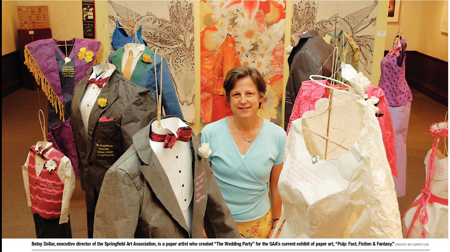 Dollar said the art gallery just closed its successful June-through-August run of “Play Ball: The Art of America’s Favorite Pastime.” Now through Oct. 1, the gallery features “Pulp: Fact, Fiction and Fantasy,” a juried show that celebrates papermaking and the 2D and 3D art made from it. Artists from around the nation are participating, as well as an exhibit by Betsy Dollar herself, titled “Wedding Day.” “I work my butt off trying to find unique art exhibits for the gallery,” she said. (For more details about SAA’s programs, go to www.springfieldart.org.)