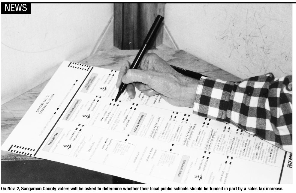 Lawmakers approved sales tax as a funding source for school districts in 2007. Since then, six other counties have implemented sales tax increases. A one percent increase in the county’s sales tax, which is what the schools are seeking, would bring in about $19 to $20 million to county schools. The funds would be divvied up to each district according to enrollment numbers. The sales tax would not apply to medicines, automobiles or most groceries, and its proceeds could only be used for school facility improvements. The Sangamon County board has placed a second referendum on the ballot asking voters whether the board should institute the full 1 percent increase schools are asking for.