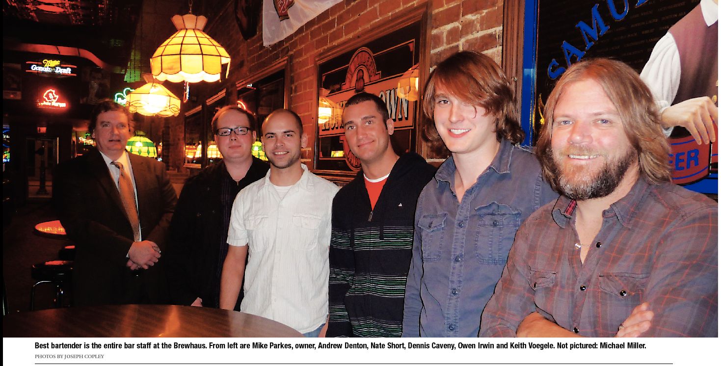 BEST BARTENDER 617 E. Washington St., 525-6399 Brewhaus owner Mike Parkes, a perennial favorite in the best bartender category, seems to have trained his bar staff well. This count boiled down to a contest about which Brewhaus bartender would get the most votes and collectively the crew raced far ahead of the nearest competition, so we just decided to give the prize to the entire staff. Now headed by Nate Short with Keith Voegele acknowledged as senior barkeep, the other Brewhaus bartenders include Andrew Denton, Owen Irwin and Michael Miller. Their secret to success appears to be no secret at all. A consistent crew who know the esteemed craft of serving drinks well involves knowing your product and how to present it along with lending a listening ear to the plight of paying patrons.